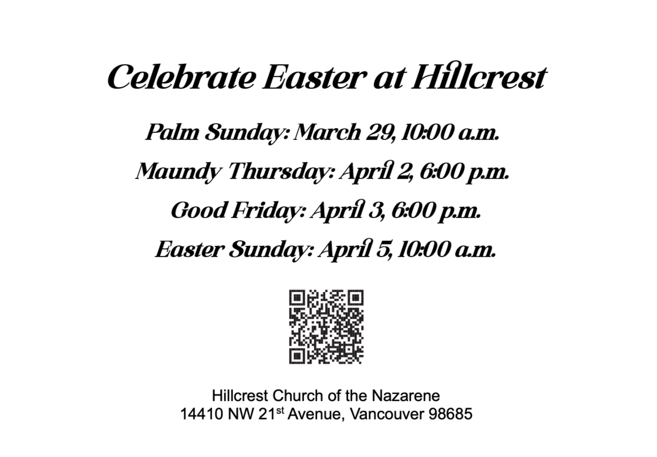 Come and celebrate the joy of Easter with us at Hillcrest! This is a day of hope, renewal, and victory as we rejoice in the resurrection of Jesus Christ